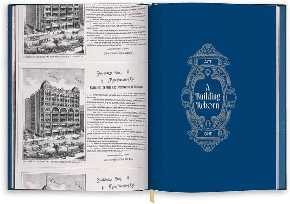 By 1895, the Studebaker company was expanding so quickly that plans were made to move to a brand new, larger warehouse and manufacturing plant on Wabash Avenue. With the existing structure on Michigan Ave, Studebakers invested over $500,000 to remodel the building into an artists’ haven of studios, offices, and theaters. This extensive renovation was one of Chicago’s first large-scale examples of adaptive reuse and set the stage for one of the city’s earliest arts hubs to be born.