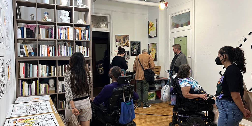 A gallery offering art exhibitions, poetry readings, workshops, a mad/disability research library, and other opportunities centered around madness.