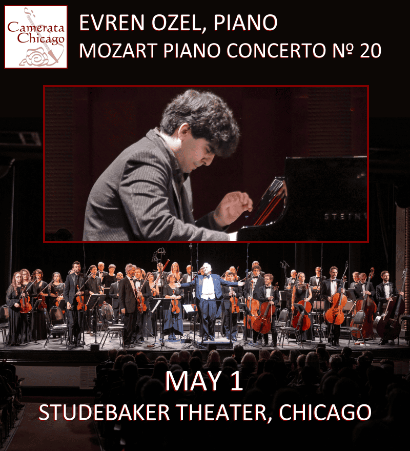 Enjoy a fabulous spring evening filled with Mozart! Camerata Chicago is delighted to present Evren Ozel, a winner of the Van Cliburn International Piano Competition performs Mozart’s Piano Concerto No. 20 with Camerata Chicago.