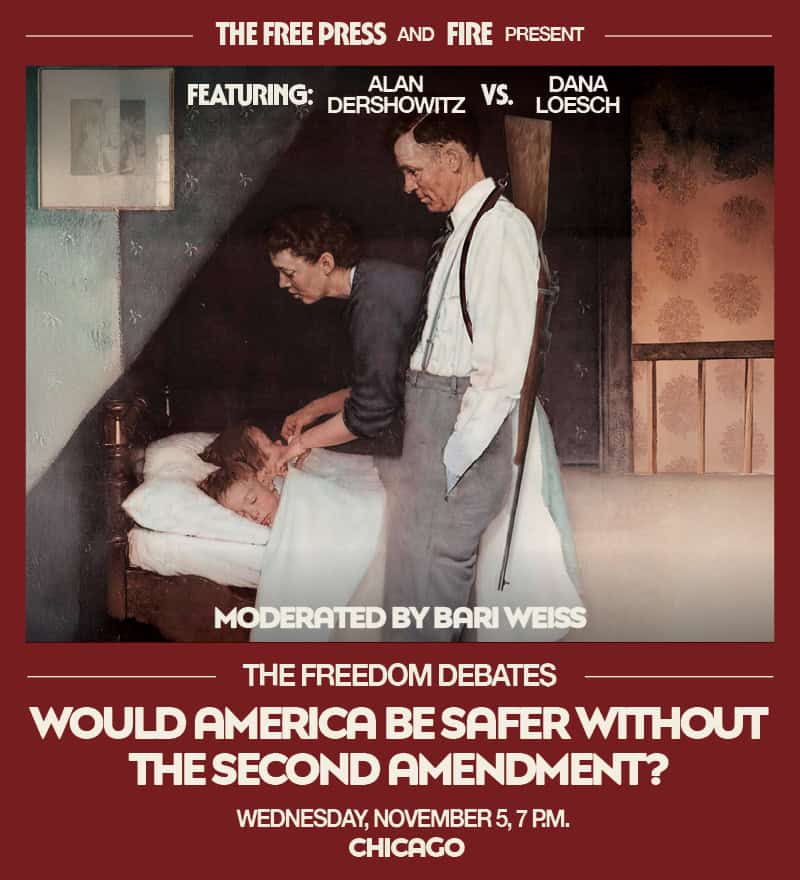 Free Press founder Bari Weiss will moderate the debate. It will dig into whether the right to bear arms today is at odds with the common good, or if it is as necessary now as it was in 1791.